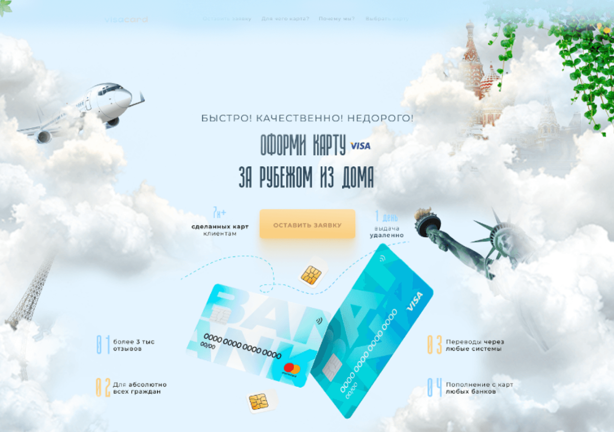 Landing - Cервис по оформлению иностранных карт